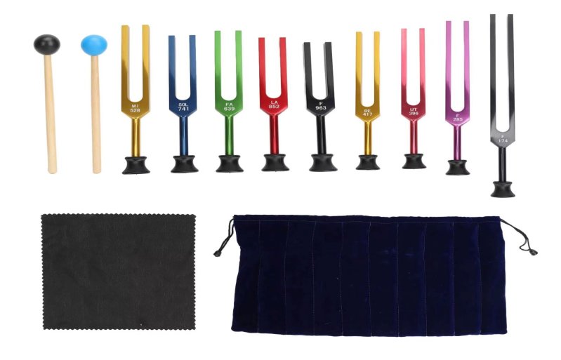Getachyoniseerde stemvorken Solfeggio set in aluminium.