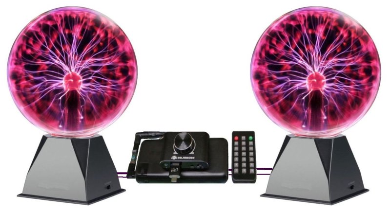 - Uitbreiding naar 4 plasma bollen mogelijk door extra audio- en voeding splitters waarbij de plasma's dan in een vierkant geplaatst worden